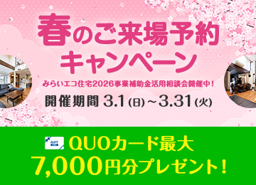 春のご来場予約キャンペーン開催です! 暖かくなってきましたね! 冬の間におうちの傷んだヶ所や寒くてなんとなくそのままにしてしまった不具合など、お出かけがてらご相談にいらっしゃいませんか(^^) ご予約での来場、お見積もりなどでクオカードのプレゼントいたします! ◇リノベーションってなあに? リフォームや新築とどう違うの? ◇どんな設備があるの? ◇耐震診断はお願いできるの? 誰かに聞きたいけど、誰にきいたら?・・・そんな方も多いと思います。 なかなか機会がなくて・・・そんな方はぜひワールドハウスリフォームにご相談ください! 地域で半世紀、7000棟を超える新築の実績と経験が、 お客様の快適な暮らしのサポートをいたします(^^)/ プレゼントは最大でクオカードを7000円分!(^^)! ☆彡 ①ご来場予約で・・・1000円分&ゴディバお菓子 ☆彡 ②お見積り依頼&ご提出で・・・1000円分 ☆彡 ③現地調査で・・・5000円! ※③のプレゼントに関しては、工事代金が10万円(税抜き)以上の方を対象といたします。 ※フルリノベーションの方は現地調査&見積提出で6000円プレゼントいたします。 ※アンケートへのご協力など下記注意事項・条件を必ずご確認ください。 ※必ずご確認ください※ 【プレゼント進呈条件】 ・ワールドハウスリフォームへのご来場が初めての方 ・本キャンペーン期間中にワールドハウスリフォームのHPにてご予約の上ご来場された方 ・ショールームにご来場の上、アンケートにすべて記入いただいた方 ・弊社施工エリア内でフルリノベーション・リフォームを計画されている方で、前向きにご検討またはリフォームが可能とスタッフが判断した方。不当にプレゼントを取得しようとされていると弊社がみなした場合はプレゼントの提供をお断りする場合がございます。 ・プレゼントは当キャンペーンでひと家族様1回のみ有効です。 ・ワールドハウスリフォーム、他社さま問わずご契約前の方 ・お渡しは在庫の状況によりご来場後や打ち合わせ後になる場合がございます。 ・前日の17:00までに予約の方 ・事前の予約状況によってはご予約時間帯を調整をさせていただきます。連絡の取りやすいお電話番号にてご予約下さい。 ・「ドメイン指定受信」を設定されている場合は、[koori.jp]からのメールを受信できるように設定してください。 ・「ドメイン指定受信」の関係で弊社よりお客様へメール送信できない場合は、お電話にて連絡させていただく場合がございます。 ・ご本人さま確認のため身分証明書などの書類ご提示のお願いをする場合がございます。