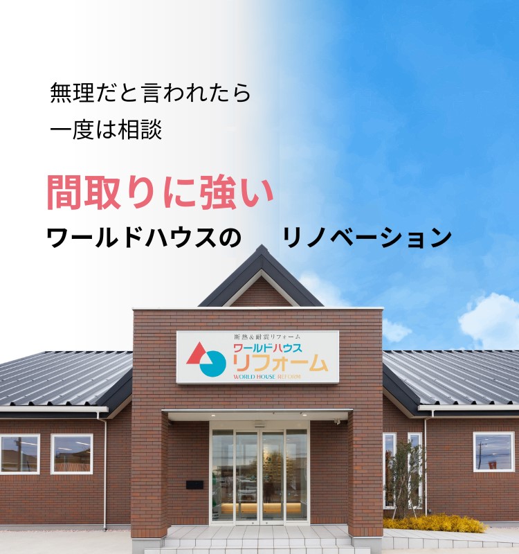 【随時受付中】「大規模改修・リノベーション」相談会! 〈ご自宅や持ち家のリフォーム・リノベーションを検討している方向け相談会〉 ワールドハウスリフォームでは、増改築・減築・部分リフォームなど、間取りの変更を伴うリフォーム・スケルトンリフォームなど、大規模なリフォームをご検討の方向けに、工事の内容、間取りの相談、お金のこと、気になるさまざまなことが聞ける相談会を開催しています。 参加方法は、こちらのページから事前のご予約がスムーズです。遠方の方で来場が難しい場合はお電話でお気軽にご相談ください。 01|こんな方におすすめ 02|ワールドハウス リノベーションの特徴 経験豊富なスタッフが、あなたのお悩みやご相談に丁寧にお応えします。 03|個別相談会お申込みについて リフォーム・リノベーションを具体的に検討されているお客様はもちろん、リノベーションが自分たちに合っているのかどうか一度話を聞いてみたいという方も大歓迎です。 減築リノベーション 増築リノベーション 部分リフォーム(例:和室と和室をつなげて現代風のLDKに変更) などなど・・・こんな工事できるの!?気になることにお応えします! ======================== ご参加方法は、 WEBからの事前予約・ショールーム来店 お電話でのご相談 お客様のご状況に合わせて承ります。 ======================== ■施工事例はこちら ▽【NEW】施工事例を見る https://worldhouse-reform-koori.jp/gallery/ ■お客様の声はこちら ▽他のお客様の声を見る https://worldhouse-reform-koori.jp/voice/ ■関連記事はこちら 「どっちが正解?建て替えかリノベーションかを決めるポイント」 https://worldhouse-reform-koori.jp/blog/details_2640.html 「2階建てを平屋に減築するメリット・デメリット」 https://worldhouse-reform-koori.jp/blog/details_2273.html 「築30年以上の家でも大丈夫!長く住むためのリノベーションポイント」 https://worldhouse-reform-koori.jp/blog/details_2804.html ======================= ご参加方法は、 WEBからの事前予約・ショールーム来店 お電話でのご相談 お客様のご状況に合わせて承ります。 ======================== ◇ショールームご案内 旭ショールーム 住所 〒289-0517 千葉県旭市萬力3480-2 時間 9:00-17:00(水曜定休) TEL 0120-540-050 成田ショールーム 住所 〒286-0045 成田市並木町219-273 時間 9:00-17:00(水曜定休) TEL 0476-24-3377