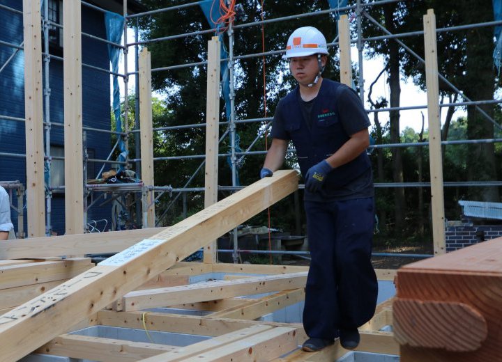 こんにちは、ワールドハウスです。 前回に引き続き、リフォーム工事課の角(すみ)さんにお話を聞いていきます。これからますます成長していく、社員大工の皆さんに期待が高まります^^ 前編はこちらから ▶道具の使い方や体調に気をつけて、事故のない現場を心がけています【社員インタビュー:角さん(リフォーム工事課)前編】 大工の技術の高さ、丁寧な仕事が「お客さま想いの家づくり」につながる ――角さんが考える、ワールドハウスの魅力は何でしょう? 角さん: 大工の技術の高さです!自分はまだまだ見習いで、親方の元で学んでいますが、すごく丁寧な仕事をされていて、技術の高さに驚くばかりです。 就活をしているときに思い知りましたが、自社で大工を育てる会社は少なくて、この取り組み自体が一棟一棟に真剣に向き合っている証だと思います。とても信頼できる会社です! ――どんなにすばらしい設計図を描いても実際に建てるのは大工さんですから、「確かな技術を持つ大工を育てる」という取り組みはとてもお客さま想いですよね。 周囲の期待が大きい分プレッシャーもあると思うのですが、モチベーションを維持するためにどんなことをされていますか? 角さん: ずっとサッカーをしていたこともあって、ニュースでスポーツ選手が活躍している姿を見ると「自分もがんばろう!」と思います! ――社員大工の同僚とは、現場が一緒になることはあるのでしょうか? 角さん: 社員大工は現在7人いて、みんな年も近くプライベートでも仲がいいです。 最近は「上棟を社員大工で行う」という取り組みがあって、普段は別の現場で仕事をしているのですが、上棟のときはその現場にみんな集まります。 社員大工7名+親方の大工さんで、だいたい8~9人くらいで上棟します。気心の知れた仲間と作業できるのは楽しいです^^ 他の現場の状況を聞いたり、自分のところの進捗を話したり、情報交換の機会にもなっています。 ――仲間同士のコミュニケーションが円滑だと、仕事にも好影響で、会社全体が活気づきそうです!では最後に、お客さまへメッセージをお願いします。 角さん: まだまだ見習いですが、親方の元でたくさんのことを学ばせていただき、がんばっています!お客さまの大切な家づくりを、精一杯お手伝いさせていただきます。ワールドハウスを選んでもらえたらうれしいです。 それから自分はリフォーム工事課に在籍しているのですが、当社のリフォーム事業はここ数年始まったところで、まだまだ「ワールドハウス=新築」というイメージが強いのではないかと思います。ワールドハウスはリフォーム・リノベーションにも自信がありますので、お家の中で気になることがあればぜひお気軽にご相談ください! ――ありがとうございました!
