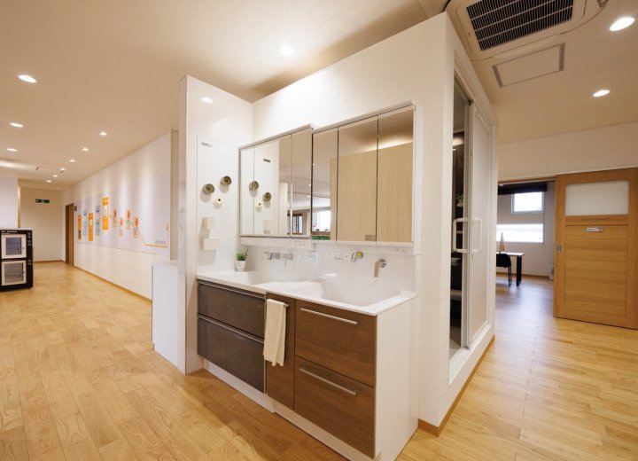 こんにちは、ワールドハウスリフォームです。 当社には、リフォームのショールームがございます。 実際の商品を見たり体感したりしていただけるのはもちろんのこと、その場でプロにご相談いただけるので、リフォーム後の空間をよりイメージしやすくなるはずです。 今回はそんなショールームのなかから、「洗面台」についての展示をご紹介します! 当社のショールームには、全部で3台の洗面台が展示されています。 そのうち2つは一般的な洗面台で、メーカーとサイズの比較ができるようになっています。 省スペースで効率良く収納ができ、お手入れも楽なのが魅力。サイズや機能は選ぶことができますので、ご相談ください。 もうひとつの洗面台は、近年人気のカウンタータイプとなっています。 二人並んで作業できる幅で、朝の身支度時には嬉しい広さです。椅子を入れて使用できるので、ここでヘアメイクも完結できます。 鏡の下にはタイルが貼ってあり、ブルーのクロスと統一されておしゃれなアクセントに。 タイルもさまざまなタイプのものがありますので、お好みに合わせてチョイスできます。 洗面台は洗面脱衣室として設置されていることが一般的でしたが、近年は洗面所と脱衣所を分けたり、玄関からアクセスの良い廊下に洗面台を設置したりするケースも増えてきました。 お客さまのご希望やライフスタイルに合わせてリフォーム・リノベーションが可能ですので、ぜひお気軽にご相談ください。 これからリフォームやリノベーションをお考えの方は、ぜひ当社のショールームにお気軽にご来場ください! https://worldhouse-reform-koori.jp/showroom/details_127.html