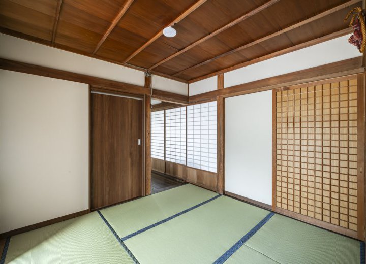 天井や建具には経年による深みがあり、光を通す障子と合わせることで柔らかな明るさが広がります。新しい畳の香りと古材の趣が溶け合い、落ち着いた空間に。