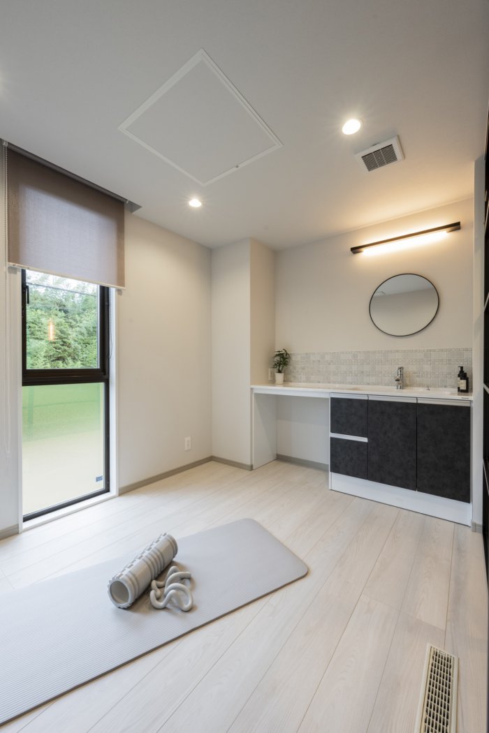 さらに、健康的なライフスタイルを意識した“ジムルーム”も新設されました。スタイリッシュな空間のなかに、ワールドハウスらしい温もりと実用性が詰まっています。
