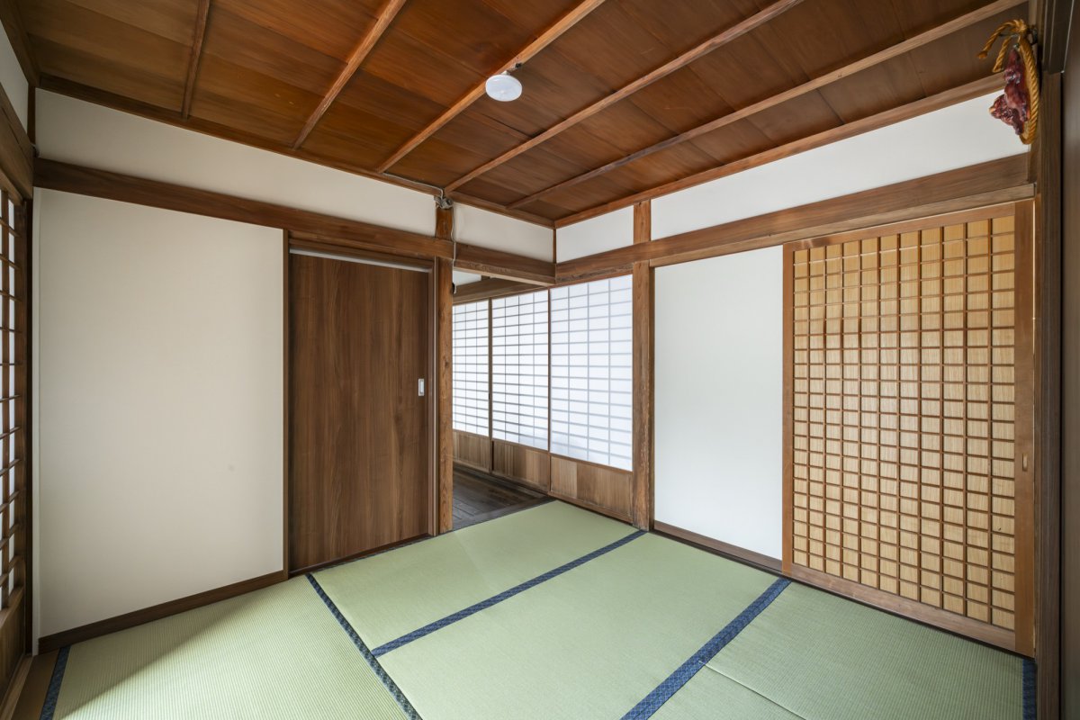 天井や建具には経年による深みがあり、光を通す障子と合わせることで柔らかな明るさが広がります。新しい畳の香りと古材の趣が溶け合い、落ち着いた空間に。