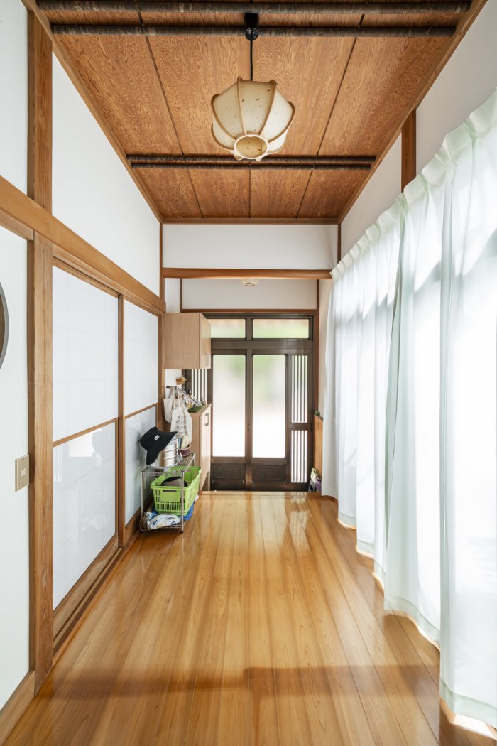 廊下には既存の無垢床を丁寧に研磨・塗装し再利用。