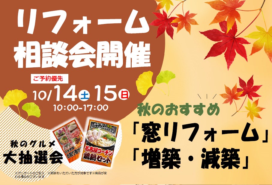 「窓リフォーム」「増築・減築リフォーム」の相談会を開催します。