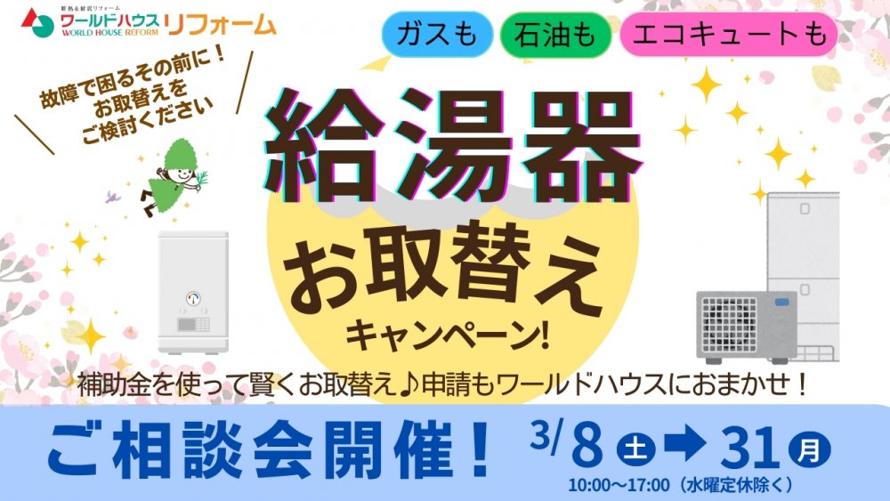 突然の故障やトラブルを回避して快適な暮らしを維持するために、今が給湯器のお取替えのチャンスです。