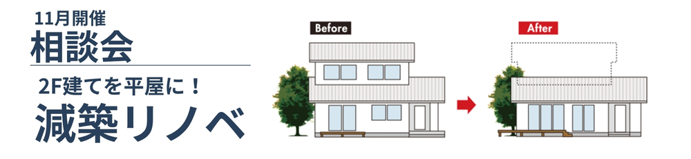 ワールドハウスの「減築リノベ相談会」では、築20年以上の2階建て住宅を“平屋”へと減築するメリットやかかる費用などをわかりやすくご説明します。