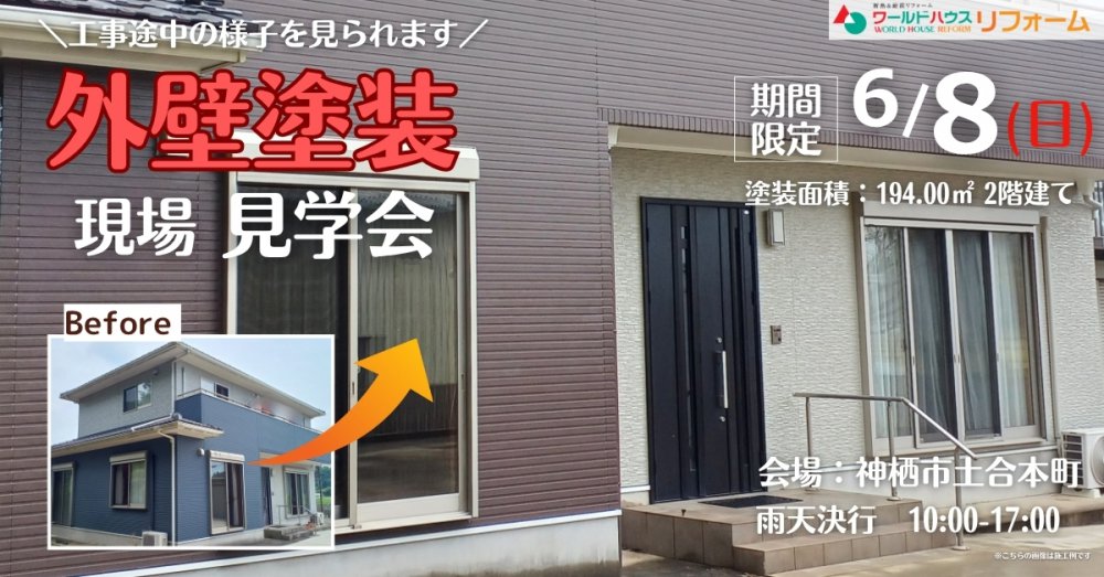 築10年以上のお住まいの方、必見です! 今回の見学会は、2006年お引渡しの戸建て住宅で、19年目にして初の外壁リフォームの現場です。高圧洗浄・下地補修・塗装…今回は塗装工程の途中が見られる貴重な機会。塗料の選び方や工事の品質を確かめてみませんか?プロによる丁寧な解説付きで、疑問もその場で解消できて安心です。