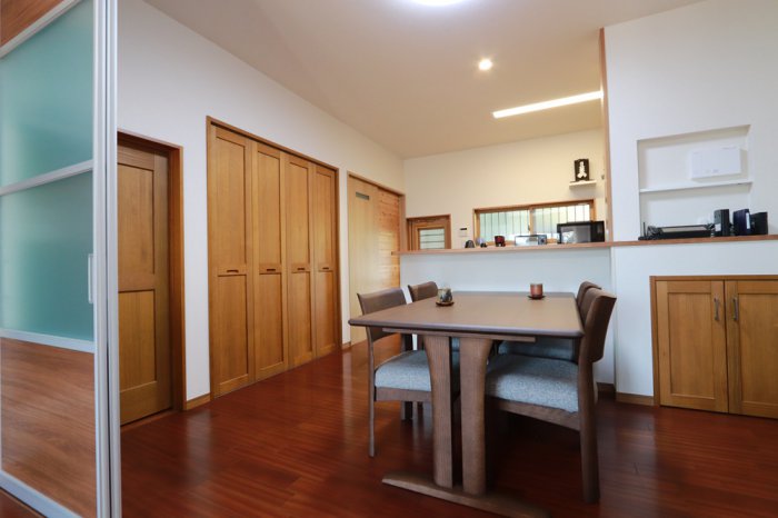 この家は父がこだわりにこだわりぬいて建てた家です。建てた当時の父との想い出も詰まっています。居間の天井の細工や、無垢の扉など、残せるものは残しながらも満足のいく空間が今回のリフォームで叶いました。この居間から四季折々の庭の様子や広がる風景を眺める時間はお気に入りの時間です。これからもこの家で暮らしていくうえで安心して気軽に相談できるパートナーが出来たという意味でも、本当に良いリフォームだったと思っています。