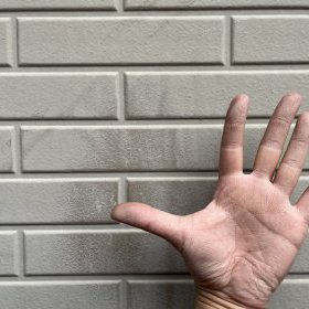 紫外線の劣化で表面が褪せて、白い粉が出てきている